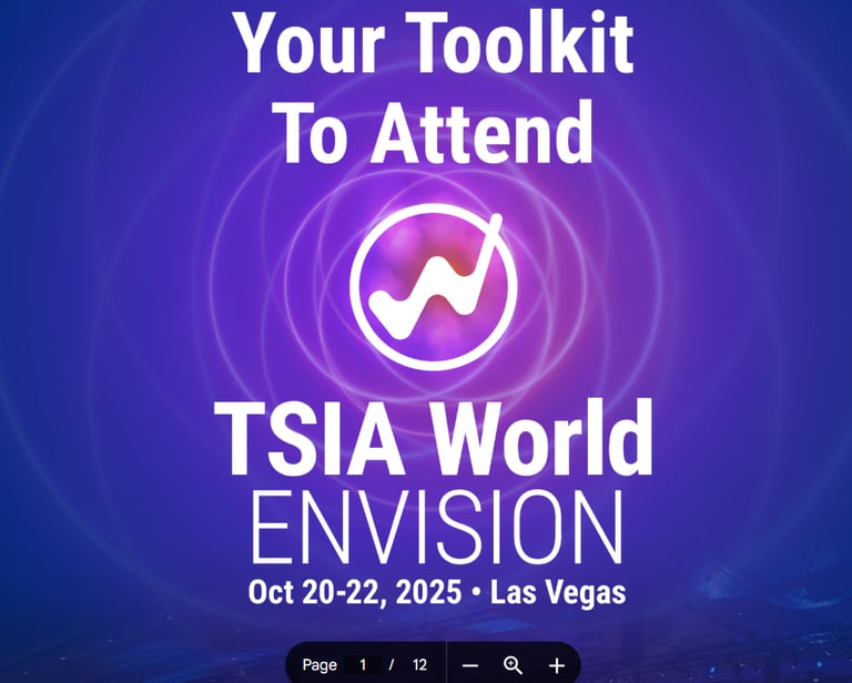 A guide that provides the who, what, when, where, and how much of the TSIA World ENVISION 2025 conference, designed to drive downloads and grow the event email list.